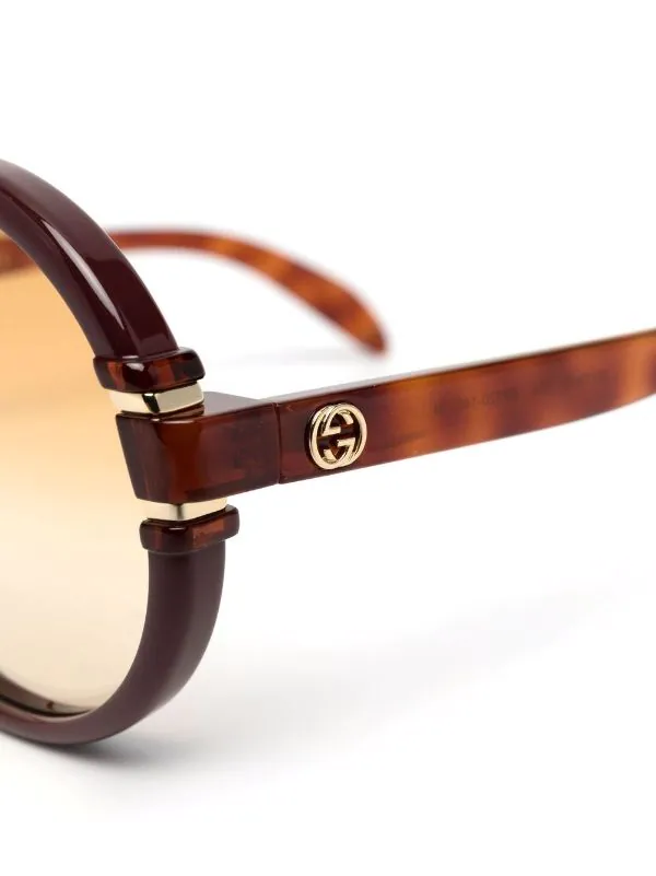 Boîtier à effet écaille de tortue, monture ronde, verres dégradés, plaque logo dorée, branches incurvées. Couleur : marron. Ces lunettes sont livrées avec un étui de protection.