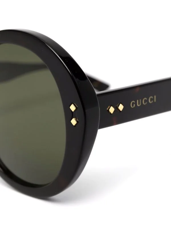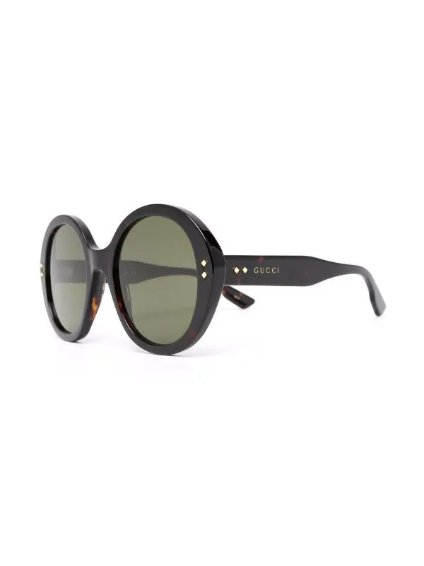 Monture ronde, verres teintés verts, branches sculptées. Couleur : noir. Ces lunettes sont livrées avec un étui de protection.