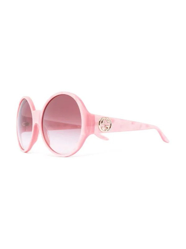 Motif marbré, monture oversize, monture ronde, verres dégradés, plaque logo sur la branche, extrémités incurvées. Couleur : rose. Ces lunettes sont livrées avec un étui de protection.