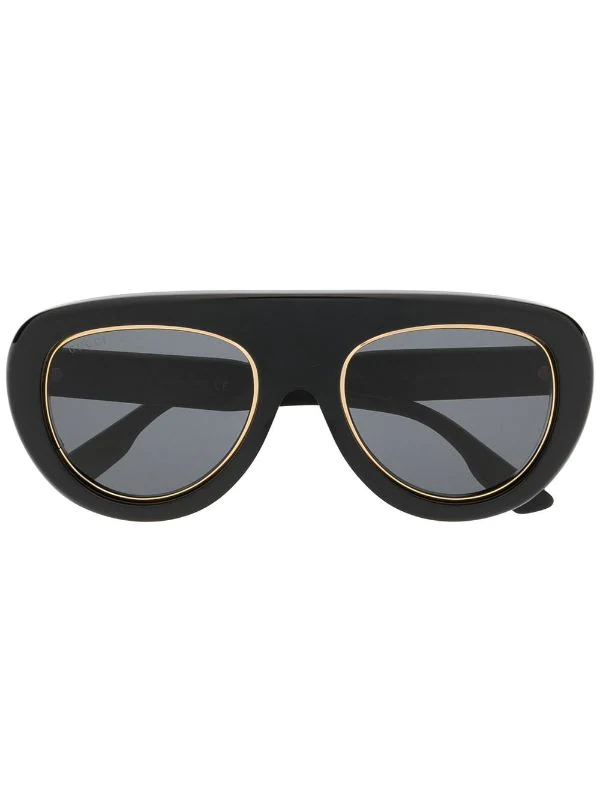 Noir, doré, monture oversize, verres teintés, verre à détail de décalque, logo gravé sur la branche, branches sculptées. Ces lunettes sont livrées avec un étui de protection. Tous les lunettes de FARFETCH sont vendues avec des verres sans prescription.