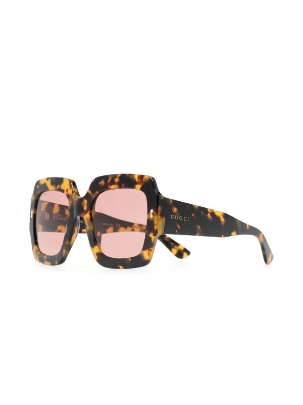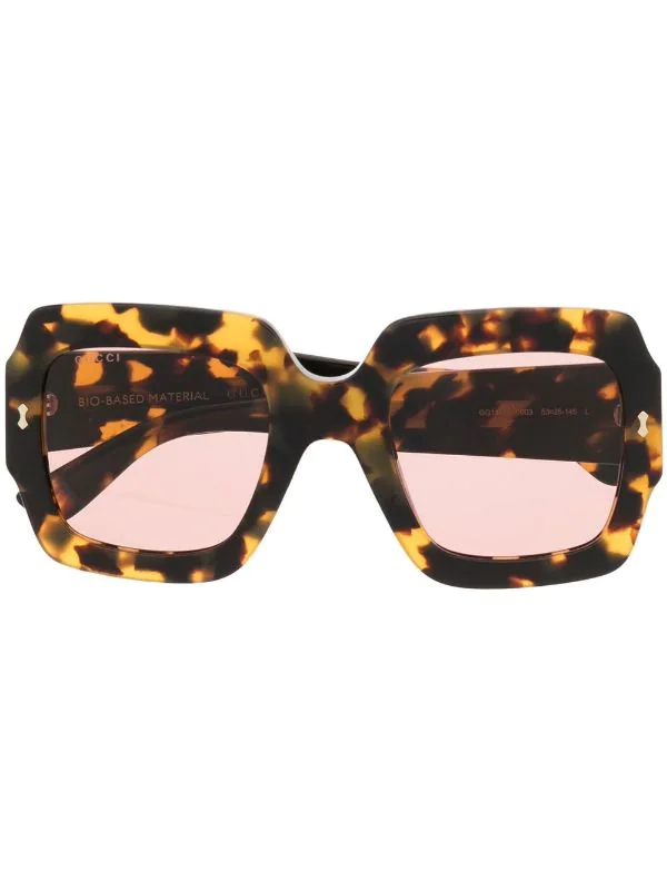Effet écaille de tortue, monture oversize, verres teintés marron, branches droites, extrémités incurvées. Ces lunettes sont livrées avec un étui de protection.