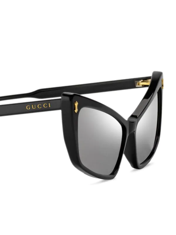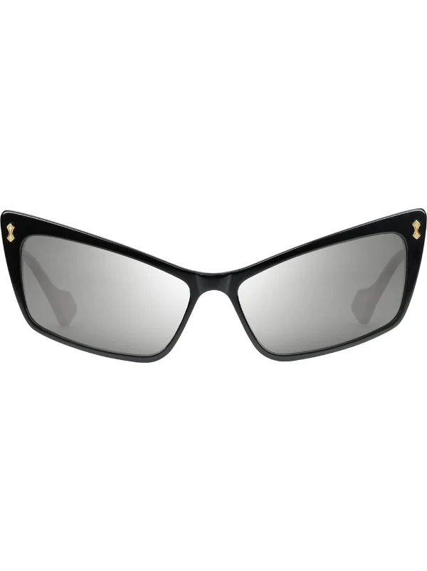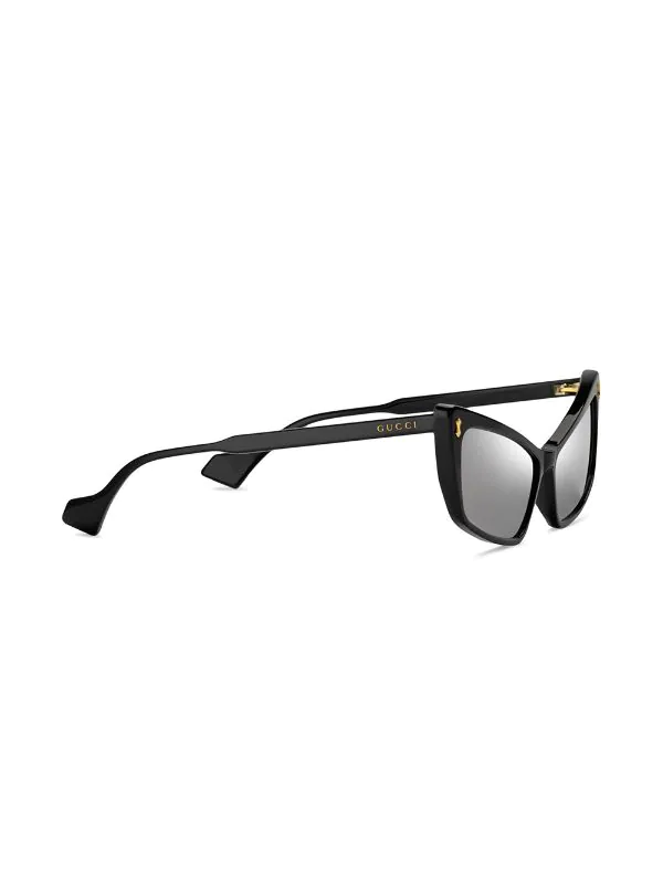 Lunettes de soleil à monture rectangulaire Gucci Eyewear avec verres miroirs, monture rectangulaire et patch logo sur la manche. Couleur : noir.