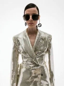 Gucci Eyewear 001 BLACK Lunettes De Soleil à Monture Carrée Femme